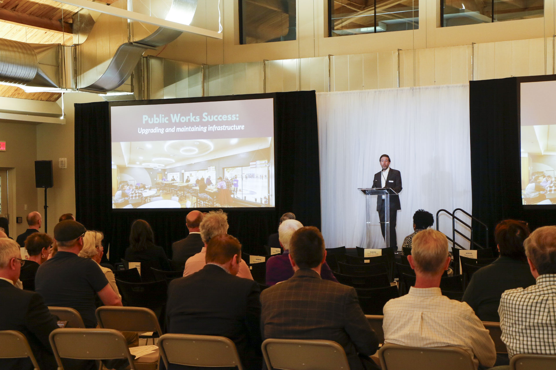 Mayor Dennis McBride said, "Tonight, I’m going to ask you to do something great: reach out to your friends in the Wisconsin Legislature and ask them to help us, and all Wisconsin cities, to meet our financial challenges. Given the makeup of the Legislature, it will be especially helpful if business leaders reach out. Ask our legislators to revise our state’s municipal financing structure.